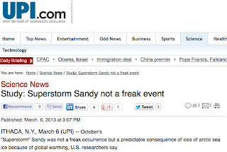 Now these unsupported claims (e.g., Hurricane Sandy is a sign of global warming) are fairly easy to disprove and the skeptic sites (e.g., Climate Audit, Watts Up) have a field day tearing them apart. Surely, if the alarmist claims of warming-induced extremes are obviously false, the whole global warming business is unfounded!