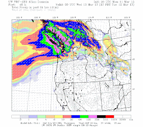 Poseidon arrives on Tuesday.  The WRF model prediction of the total water vapor in an atmospheric column for 1 PM that day shows the watery "finger" of Poseidon stretching from near Hawaii to the Northwest.  Yes, some folks have called this a "Pineapple Express", but we are beyond that now.