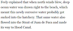 But the fact that atmospheric CO2 is probably not the main cause of recent problems is reason for hope:  perhaps the origins are from mechanisms we can control (like poor sewer treatment, excessive far or forest run-off, poor practices at oyster hatcheries).   A series, like the one found in the Seattle Times, may get people's attention, but without good science behind it and overhyping mistaken ideas, it can lead to undermining the credibility of the environmental sciences that society must depend on to make the right decisions.