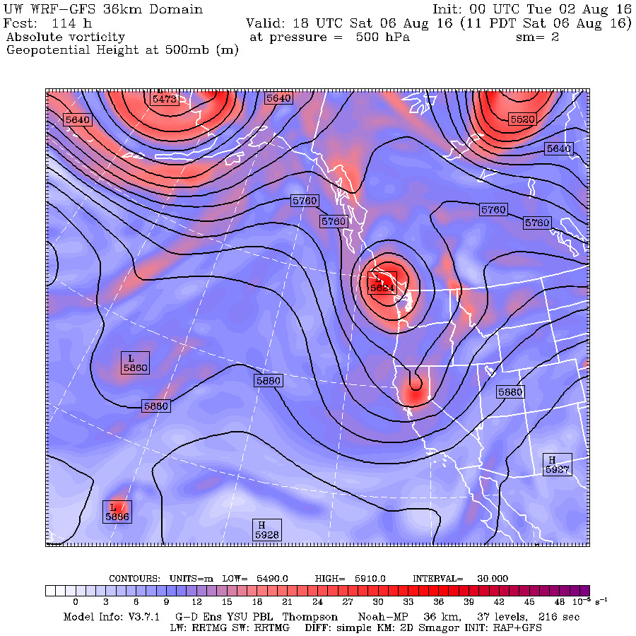 We do appear to be in a cooler pattern, with another cool/wet lupper ow ready to move in for this weekend (see upper level map below). Model forecasts suggests that this will be a wetter system (and yes, this is supposedly the driest time of the year).