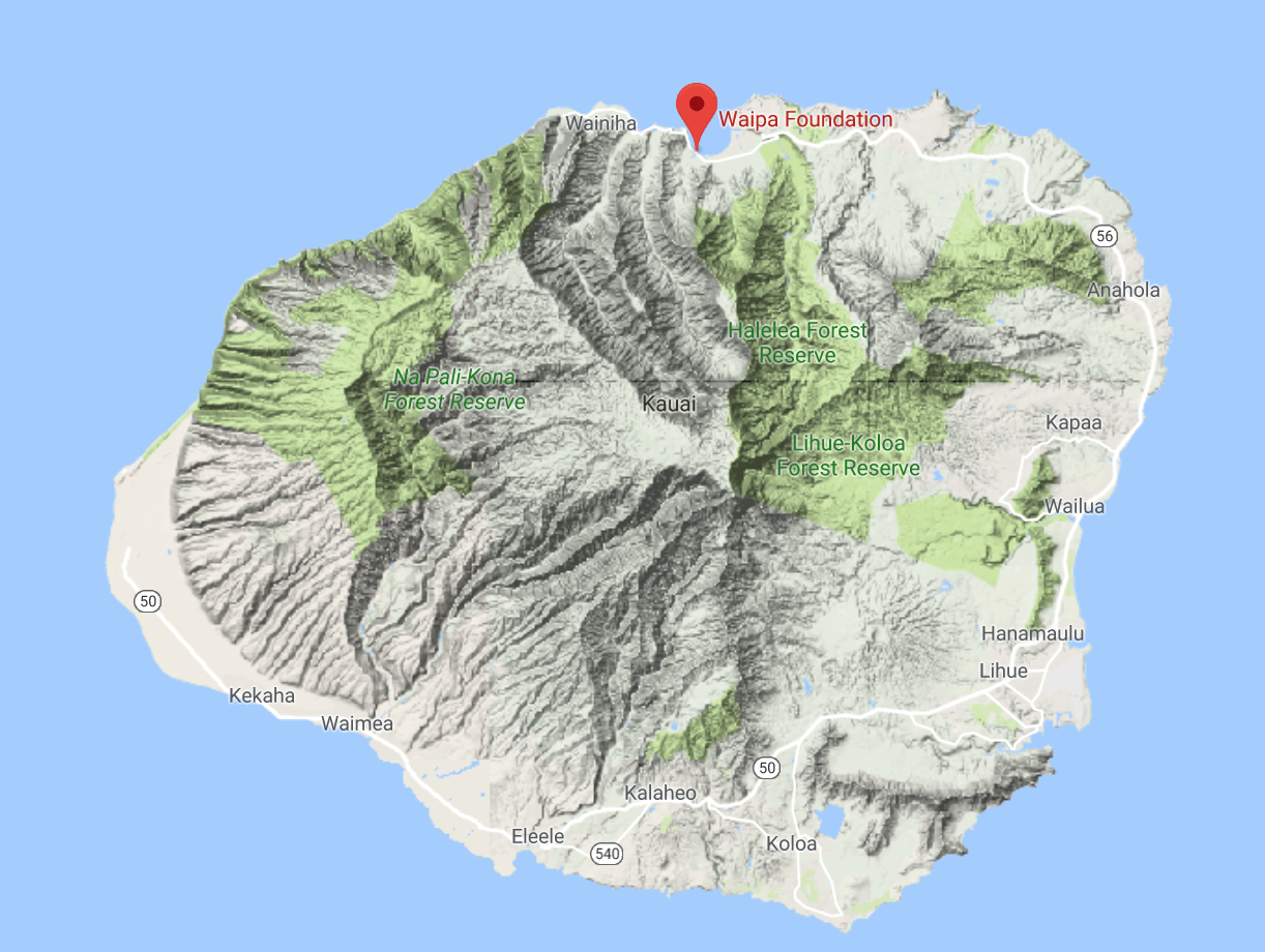 First,  consider the location of the rain gauge, in the town of Waipa.  As shown by the map, this location is near the north coast of Kauai-- very near but upstream of the substantial terrain of the island.  Essentially, an area where major terrain extends practically to the coast line.